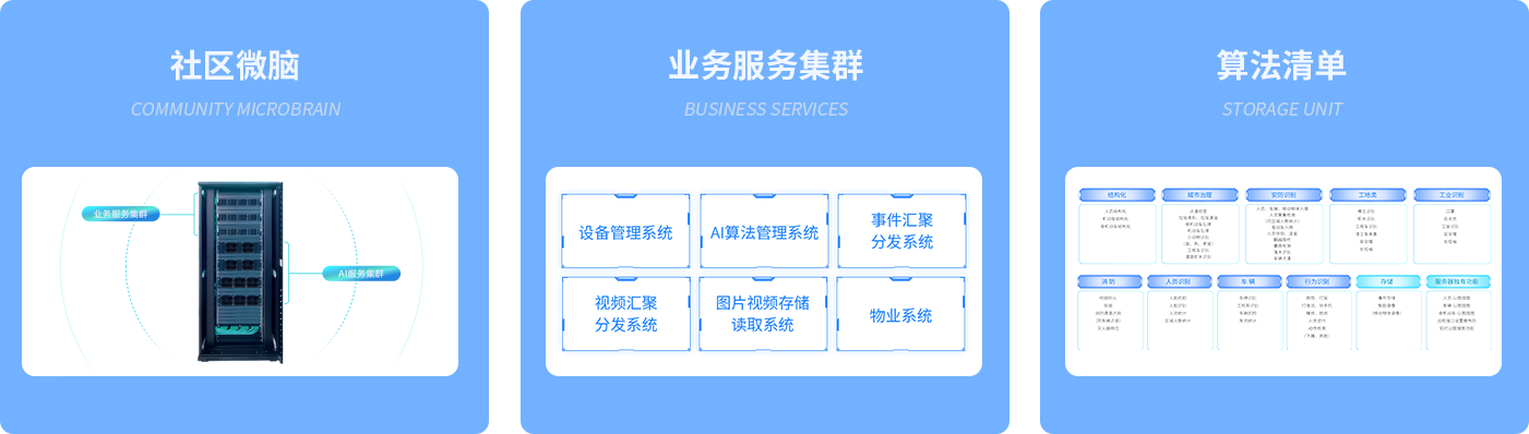 在社区内搭建社区微脑,通过接入社区前端设备,利用社区建设的视频监控、门禁、周界等前端设备资源,主动对视频信息进行智能分析,识别和区分人、事、物,建立社区事件智能发现机制,实现对社区级问题全天候、全过程的自动采集,并逐步取代人工采集方式,一旦发现异常情况或者突发事件能及时的发出警报。