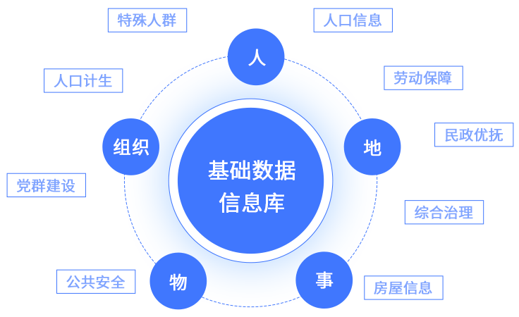通过网格员对辖区范围内的人、地、事、物、组织五大要素进行全面的信息采集管理,收集房屋信息、人口信息、党群建设、综合治理、人口计生、劳动保障、特殊人群、民政优抚、公共安全等信息,形成一个比较强大的基础数据库,便于工作人员查找社区人员信息和处理事件。