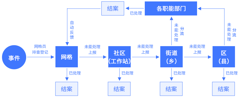 城乡网格化管理系统,通过运用数字化、信息化手段,以市、区(县)、乡镇(街道)、社区、网格为区域范围,以事件为管理内容,以处置单位为责任人,通过加强对单元网格的主动排查,主动发现并及时处理各类问题,实现上下联动,资源共享的社会治理新模式。